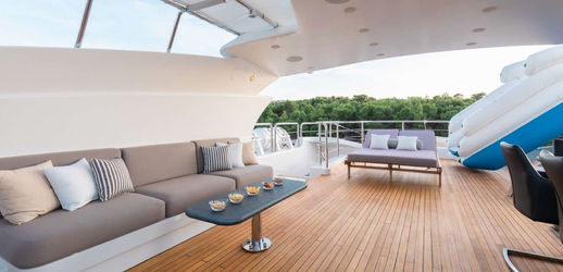 AFRICA I luxury yacht can accommodate 12 guests in six staterooms, including a master suite on the main deck with a private terrace and a VIP stateroom on the upper deck. There are two doubles and two twins on the lower deck, including a special twin kids’ cabin, ideal for 'large families'.