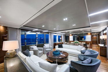 ANTHEYA III’s elegant interior configuration has been designed to comfortably accommodate up to 10 guests in 4/5 staterooms, comprising a full-beam master suite, a full-beam VIP stateroom that can be partitioned to form a separate cabin (with an L-shaped sofa that sleeps 2 guests) and 2 convertible cabins, which can be set up as a twin or double configuration.
