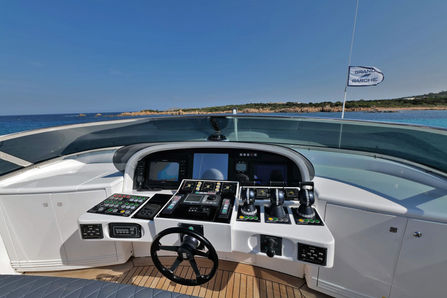 Outside relax is ensured by a Jacuzzi on the upper deck of her sporty flybridge.