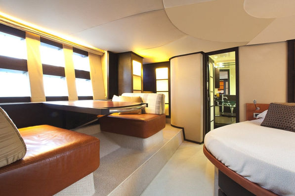 Featuring leather and wood details, ECLIPSE features three cabins, one reserved for the stewardess, therefore two available for the guests: a spacious stateroom with bathroom and a VIP stateroom bow side with twin bed convertible in two single beds and bathroom. All the cabins boast air conditioning and SAT TV with SKY channels.