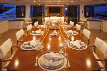 Four generously sized decks with amazing outdoor living space set BEHIKE apart from similar vessels. Her sundeck offers sensational views of the cruising destination. On the skylounge aft, guests will find an alfresco dining where the on board chef will take care to enhance the culinary experience during the charter holiday. Not last in terms of amenities, BEHIKE offers a GYM and sauna to keep fit your muscles and relax. Zero-speed stabilizers, 9 crew members and a long list of water toys will ensure guests maximum comfort, fun and attentions while on board.