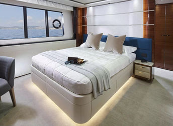 Her sleek, modern lines, timeless styling, beautiful furnishings and sumptuous seating feature throughout to create an elegant and comfortable atmosphere and ensure a relaxed luxury yacht experience.