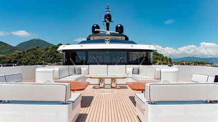 LADY LENA features a huge beach club (over 80m2) with side balconies, float-in tender dock, gym, hamman/sauna, pool in main deck with bottom glass, Jacuzzi and many other amenities guests will enjoy on board for an upscaled experience.