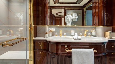 The owner's full beam suite offers an office, oversized wardrobe, sofa and vanity and ensuite with large bathtub. Plus three VIP and two multi-purpose Double Staterooms with sofa-beds and pullmans.