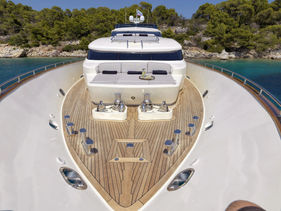 On her flybridge, the table and seating area are protected from the sun by a sliding Bimini cover. With its fresh refurbished 2020 bar and sunbathing areas, this deck will ensure our guests' full relaxation.