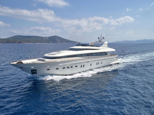 MAMMA MIA is a 34m luxury yacht built by italian yard CANADOS. This Canados 110 model was designed and launched in 2008 and has since carefully maintained to RINA classification society. She features a planning GRP hull and superstructure, with teak decks. She is also powered by 2 MTU (16V2000M93) 2,450hp diesel engines and propelled by her twin screw propellers.