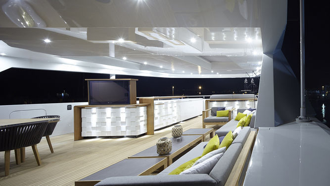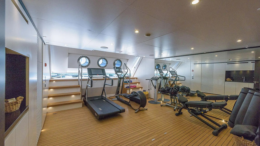 Mr T offers plenty of space on three decks including a large 25sqm Beach Club. The 5.5 m tender, rescue boat and jet ski are located foredeck. For guest entertainment and relaxation, Mr T features sunbathing areas, a fully equipped gym and a wide range of water toys.