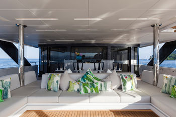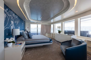 QUINTA ESSENTIA's interior layout sleeps up to 12 guests in 6 staterooms, including a master suite, 1 VIP stateroom and 4 double cabins that can be converted into 2 large suites. Special features include foredeck Touch and Go Helipad, aft pool, a full beam SPA area with steam room, comparable to a +70m superyacht, sauna and beauty studio. 13 crew member will ensure an upscaled service and charter experience.
