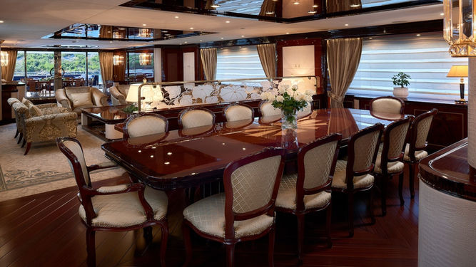 Large windows along her main-deck allow natural lighting to enter main deck and illuminate naturally the saloon ambience.