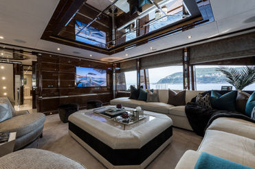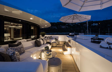 The exteriors offer a variety of areas to enjoy throughout the day and evening: sundeck boasts a split-level layout with large jacuzzi pool, bar, seating and sunbathing, dining on the upper deck aft and a very welcoming exterior lounge on the main deck aft. Furthermore, SOUNDWAVE is equipped with a SPA centre to enhance the experience of guests, complete with treatment room and steam room.