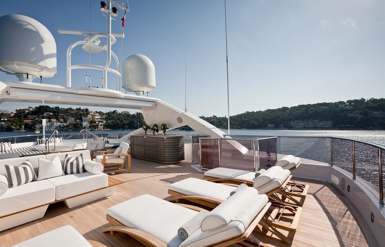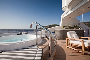 THUMPER accommodates 10 guests in 5 sumptuous staterooms : full beam master suite on the main deck and four generous guest cabins on the lower deck, all en-suites. A meticulous crew of 9, zero speed stabilizers and a wide ‘menu’ of water toys will enhance your yachting experience on board of THUMPER.
