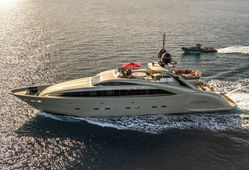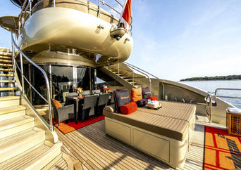 Sleek, fast and generous volumes : YCM120 is a stunning superyacht boasting wide spaces in and outdoor. Refitted in 2019, she features metallic painting and a top speed of 32 knots. Large deck space, jacuzzi in sundeck and wide ‘menu’ of water toys make YCM120 the perfect charter choice for those looking for a true entertaining yachting holiday on board.
